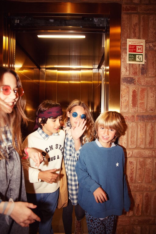 Account aanmakenUnisex sweatshirt in textured cotton fleece. Ribbed cufs. Detailed with white star print on the chest and back logo print. Baby sizes have buttons on the shoulders.