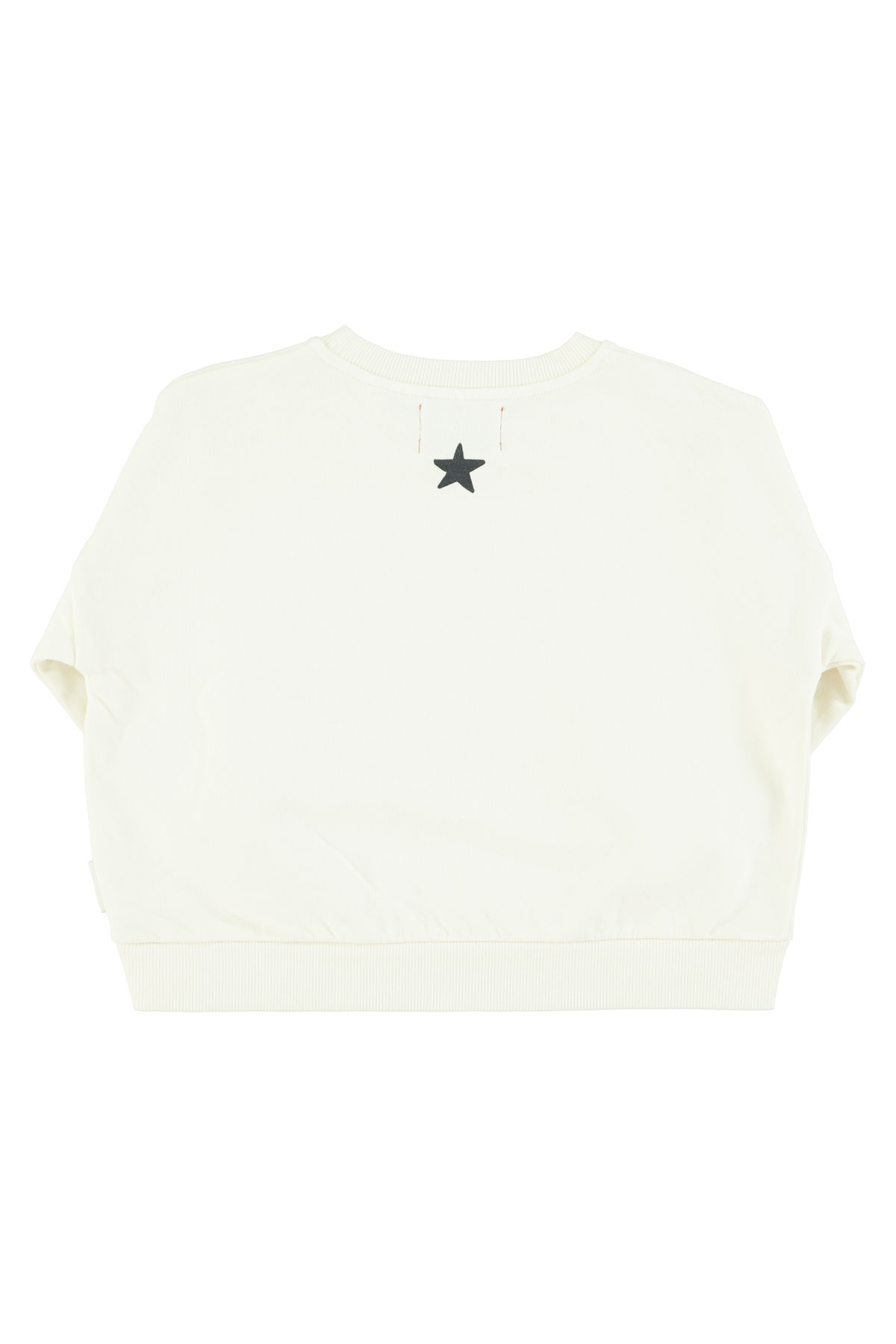 Account aanmakenUnisex sweatshirt with frontal print and a little black logo star at back. Seam details. Carded organic cotton fleece. Ribbed cufs. Baby sizes have buttons on the shoulders.