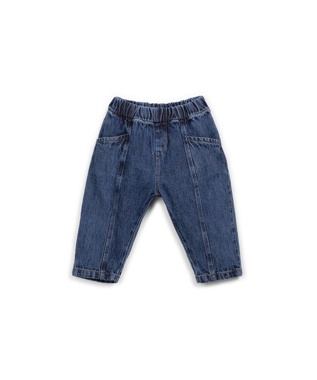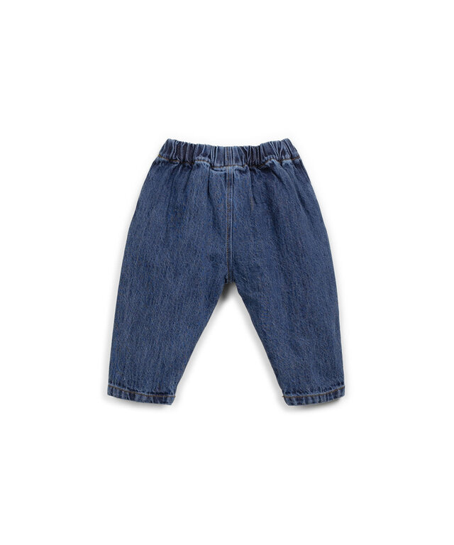 Account aanmakenThese denim trousers are made of cotton fabric in Denim color. They feature an elastic waistband and two side pockets.