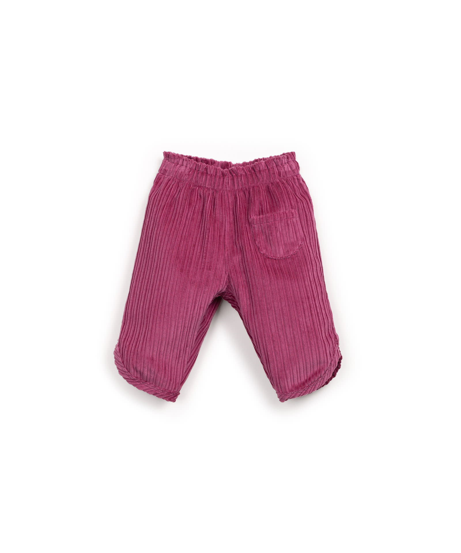 Account aanmakenThese corduroy trousers are made from fabric with a blend of cotton and recycled cotton, in Pink color. It is a model with an elastic waistband and a front pocket.