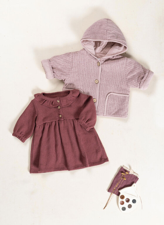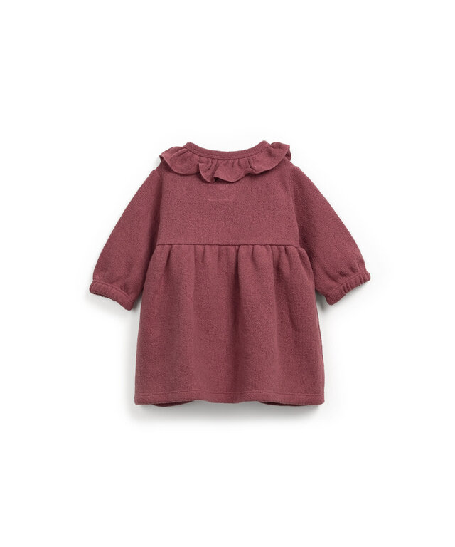 Account aanmakenThis dress is made from jersey with a blend of regenerative cotton and recycled cotton, in the color Dark Pink. It features long sleeves with elastic cuffs, a collar detail, and a front opening with coconut buttons.