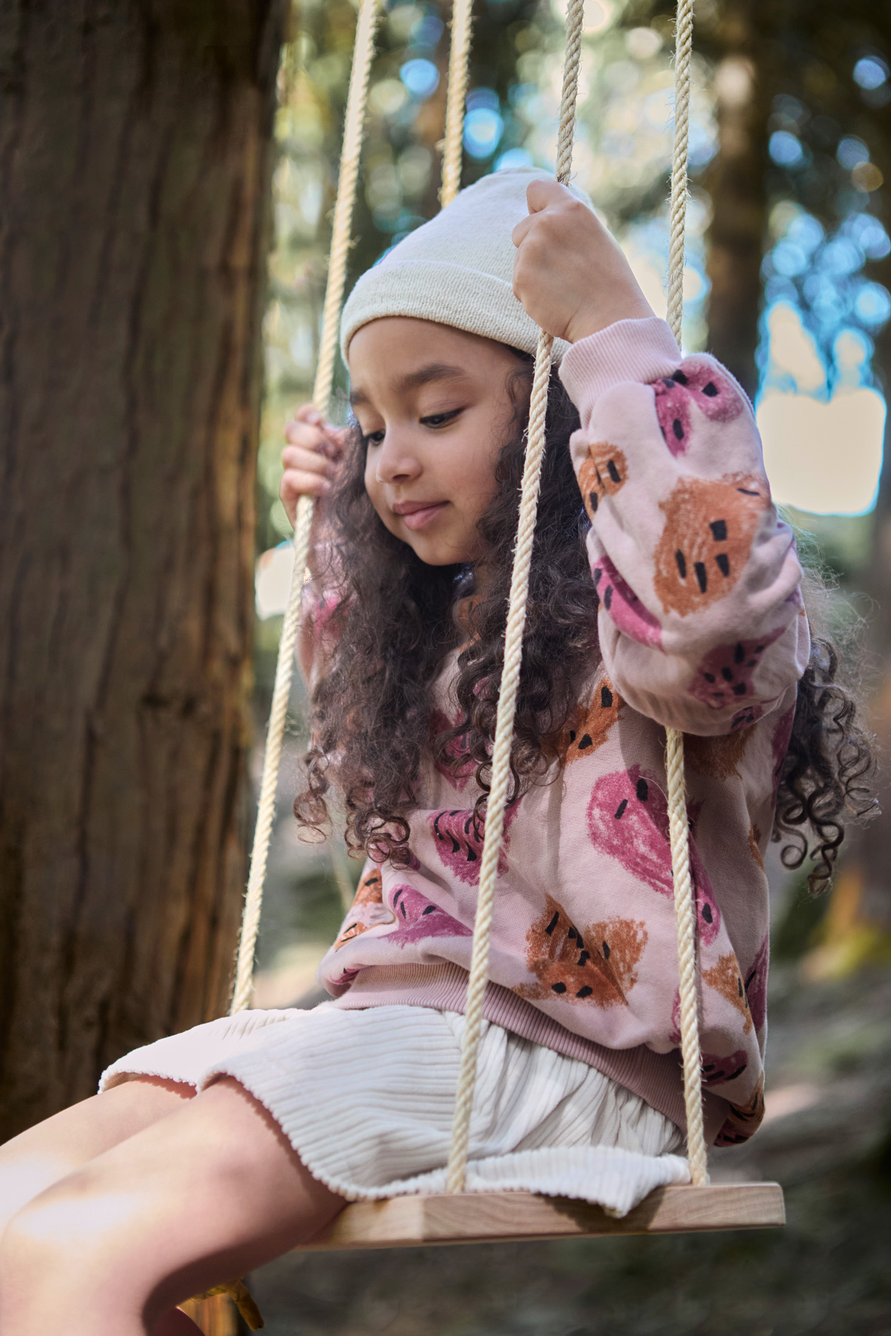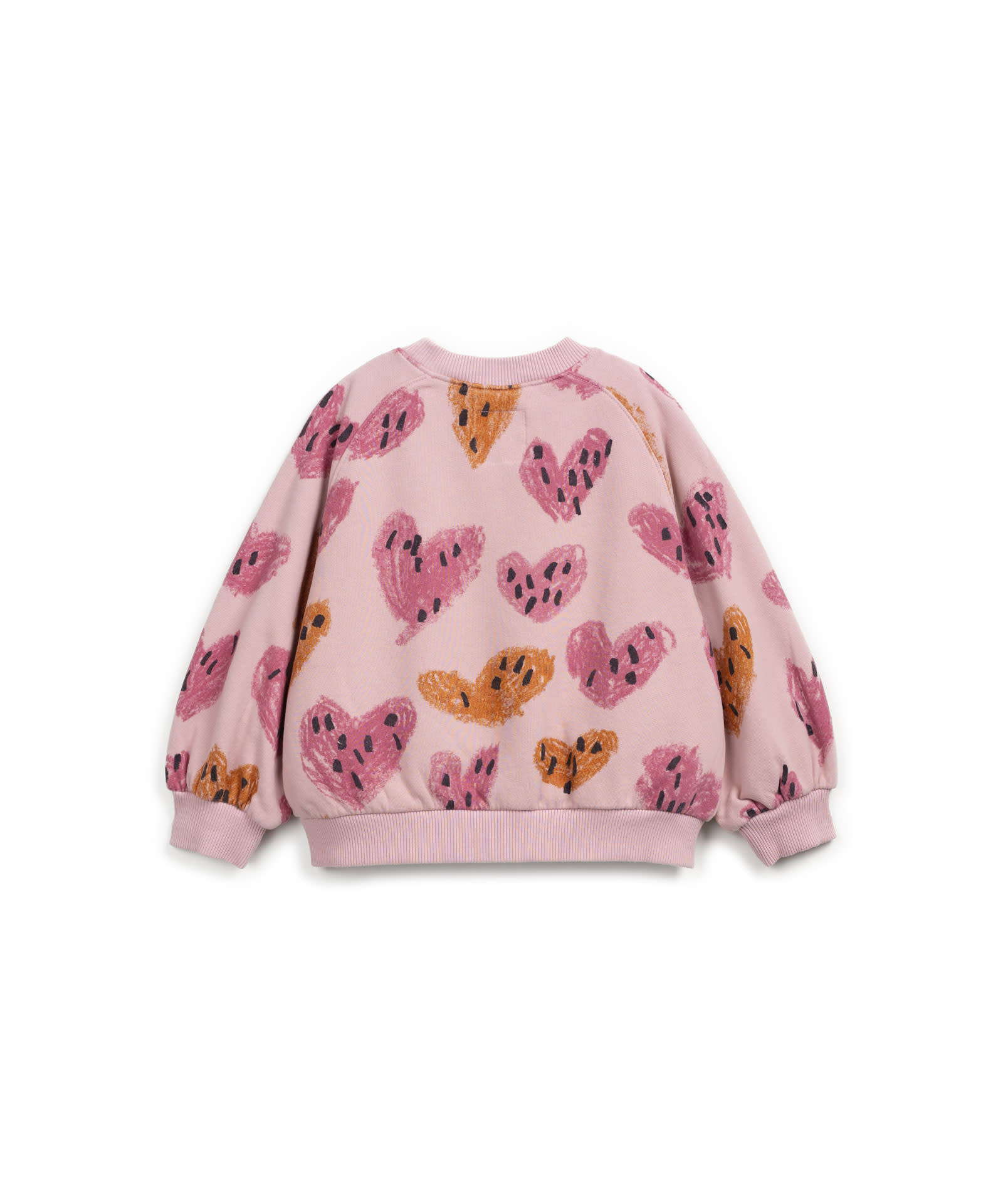 Account aanmakenThis sweatshirt is made from fleece with a blend of organic cotton and cotton, in Light Pink color. It features long sleeves, a round neckline, and heart prints.