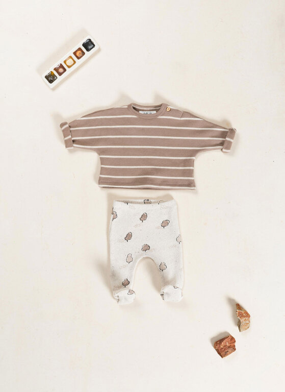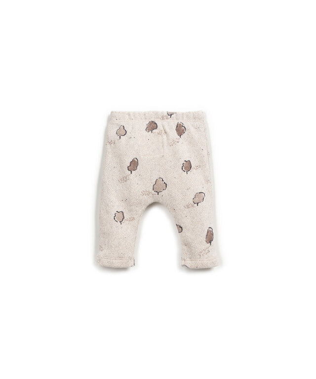 These leggings are made of jersey with a blend of regenerative cotton and recycled cotton, in the Half White color. They feature an elastic waistband, a decorative coconut button, and our tree print. This garment incorporates our Re(Play) yarn sourced from the recycling of our post-industrial waste.