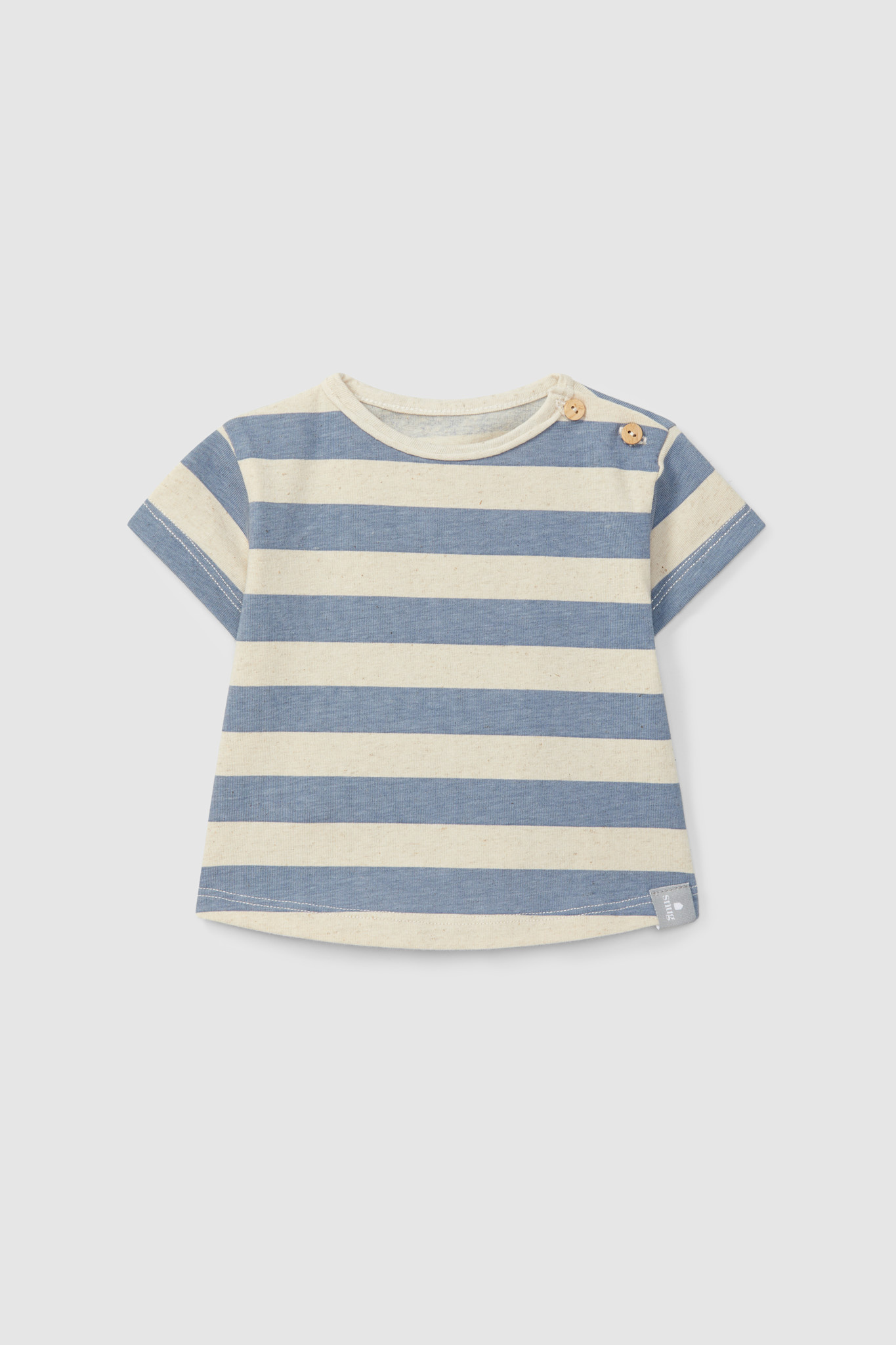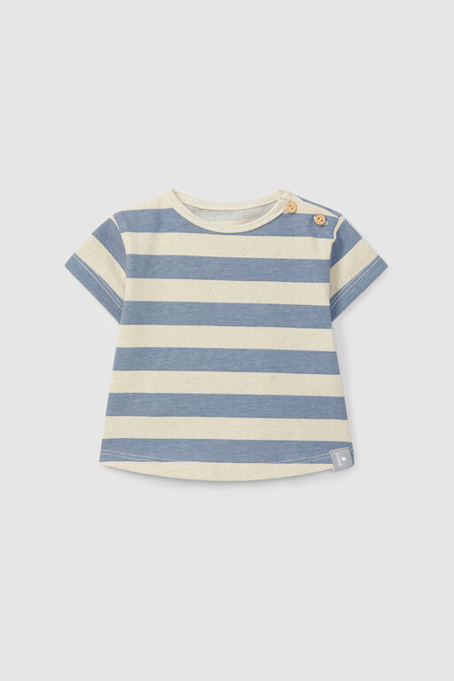 Account aanmakenT-shirt in cotton jersey with striped linen. Fastens with wooden buttons on the shoulder.