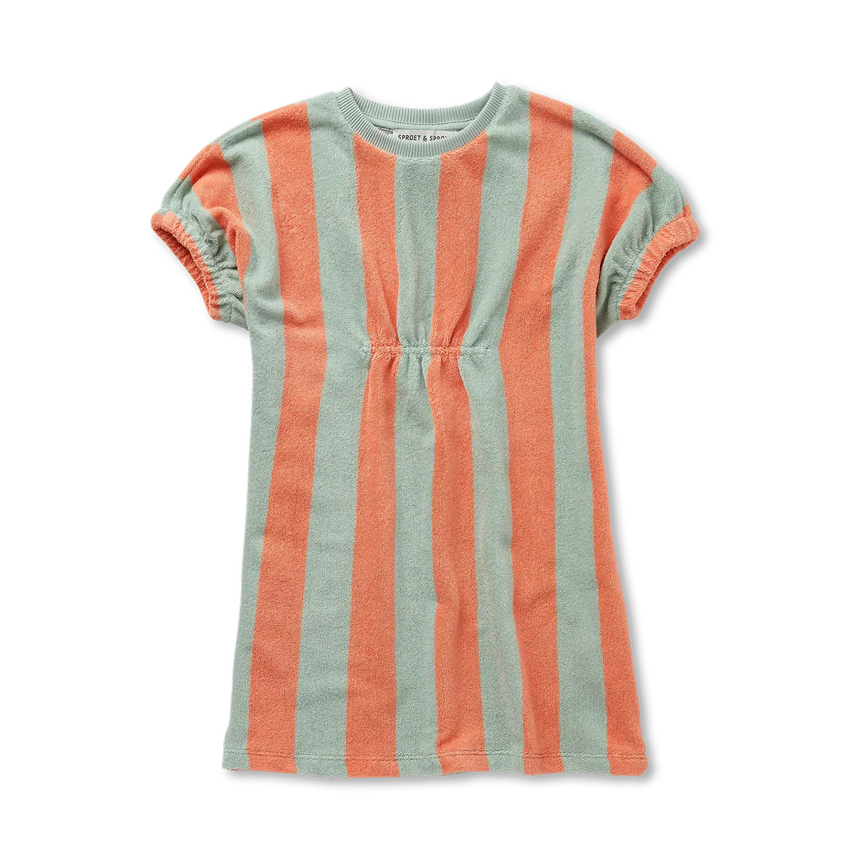 Account aanmakenCool, breezy, and ready to move. The striped terry loose dress in silt green is designed for effortless play, with wide vertical stripes and a relaxed fit that dances along with every twirl. Made from 100% organic cotton, this soft and airy style promises comfort.