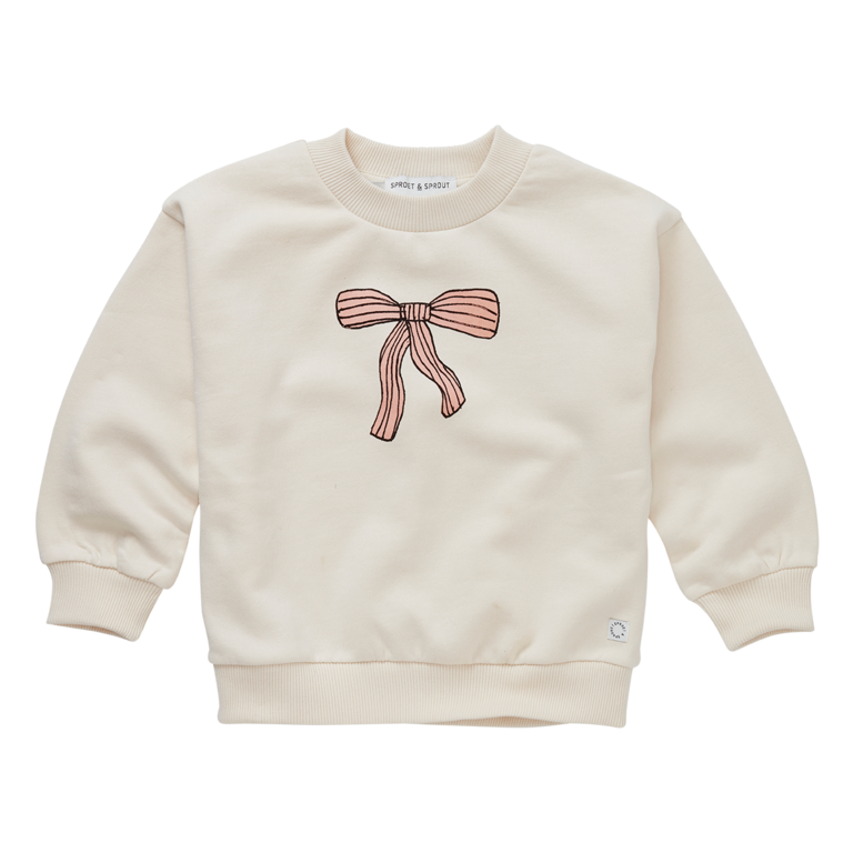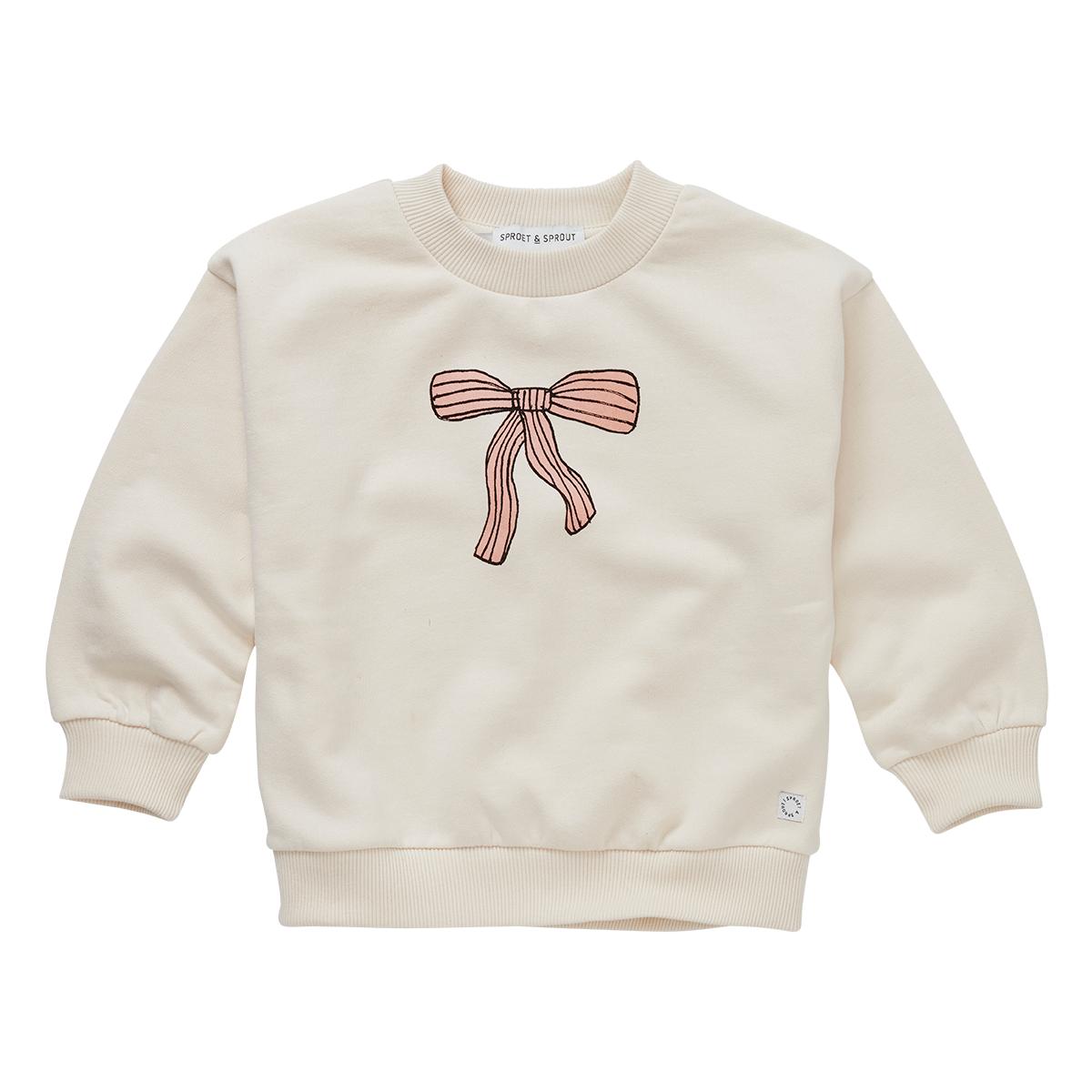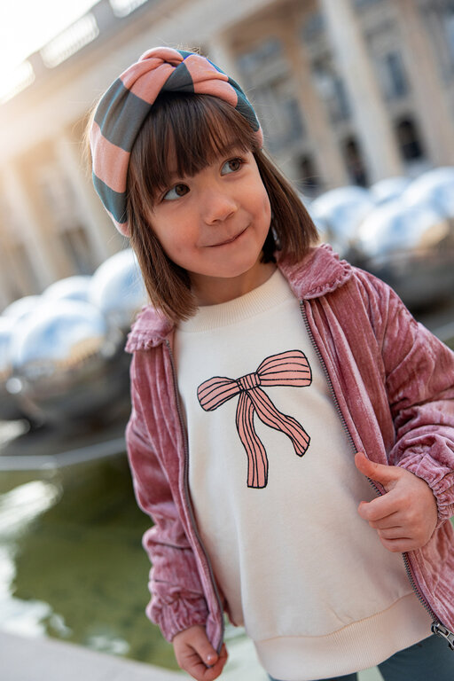Account aanmakenThis off-white girls’ sweatshirt is made from 100% organic cotton and brushed inside for a super soft feel. Featuring a bold bow print on the chest — easy to style with the pink velvet flared leggings and beyond.