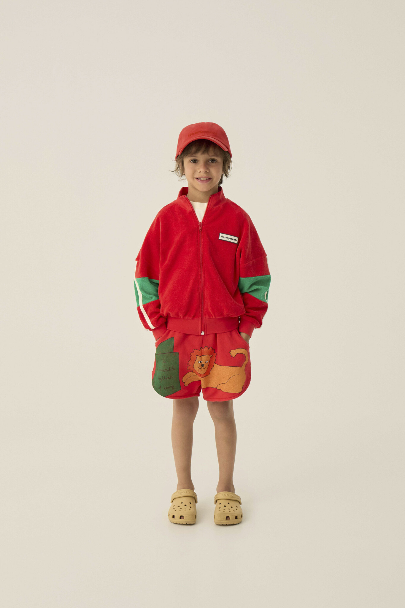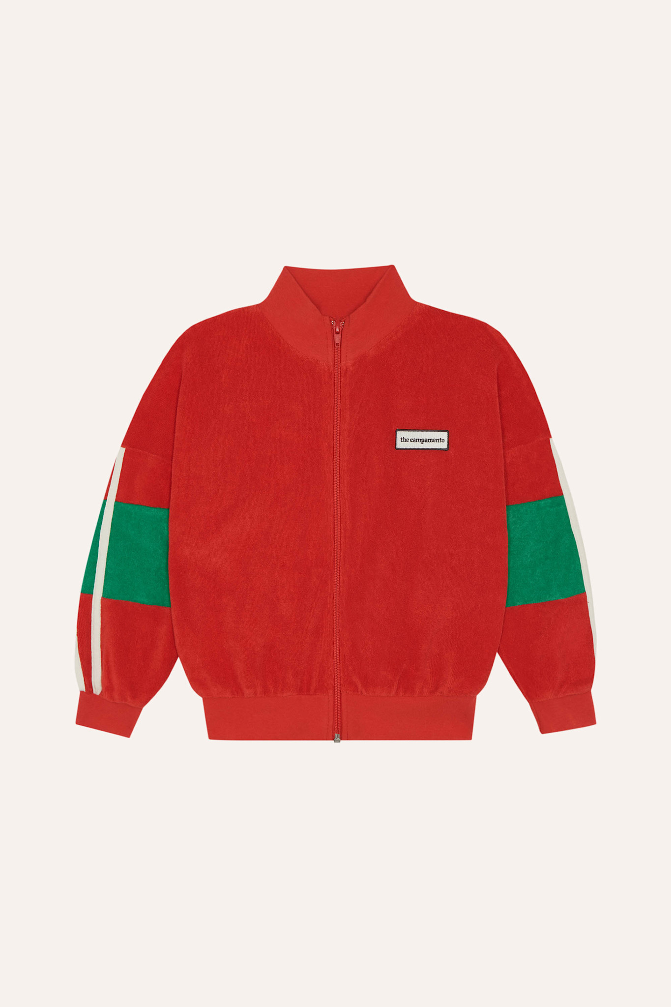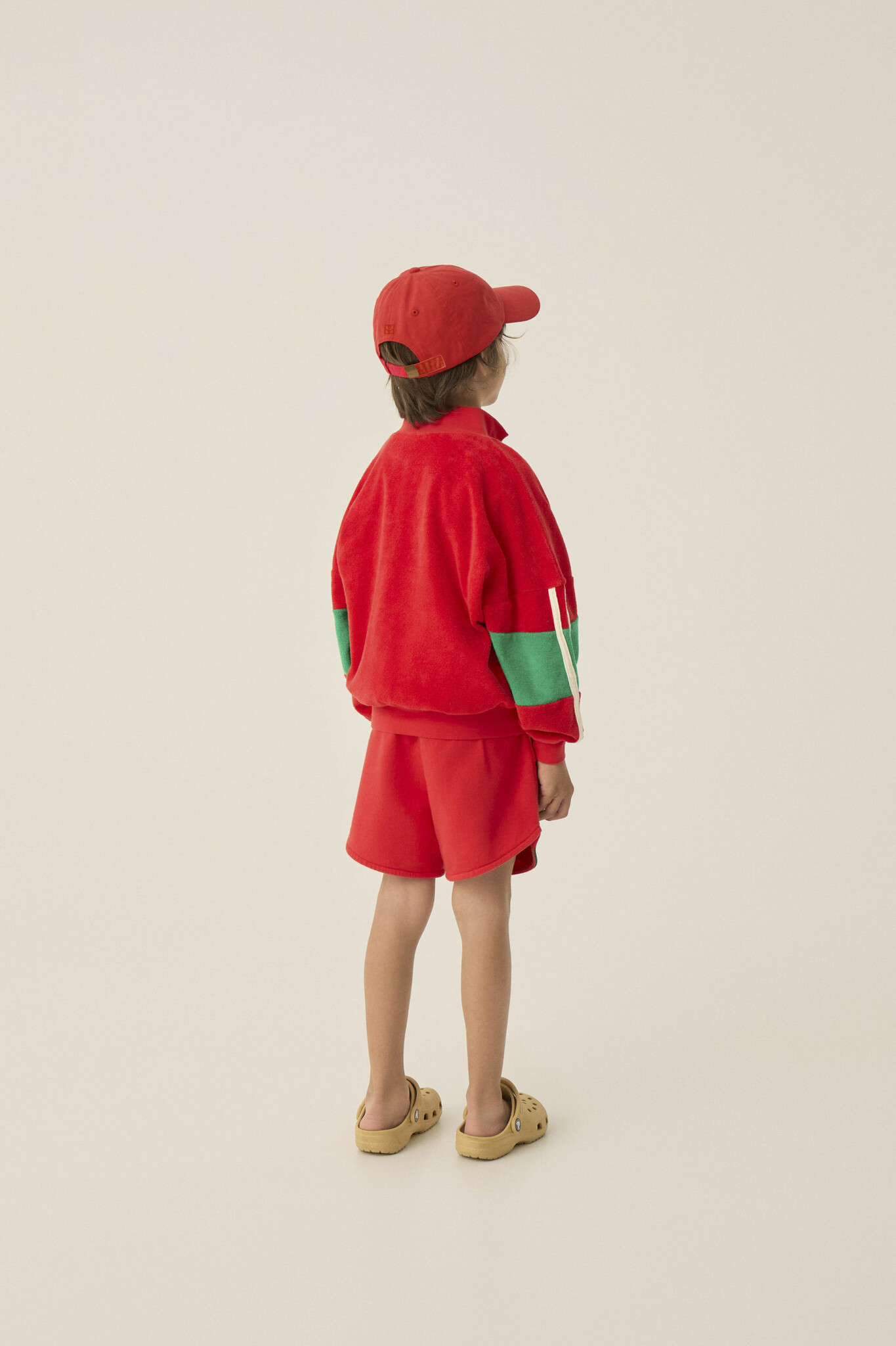 Retro vibes in this red sweatshirt with contrasts in green. With oversized fit and rib in cuffs and neck for more comfort it is perfect for summer afternoons.
