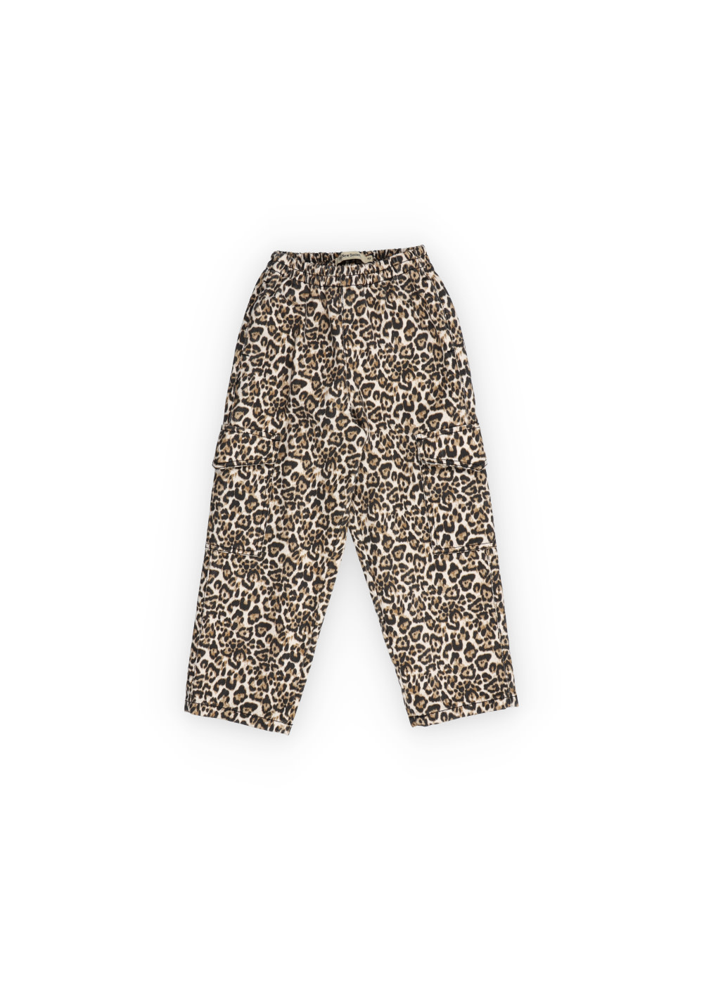 Made from 100% BCI cotton, these denim cargo pants feature an all-over leopard print for a fun and bold look. Designed with comfort in mind, they include an elastic waistband and practical side cargo pockets , perfect for everyday adventures.